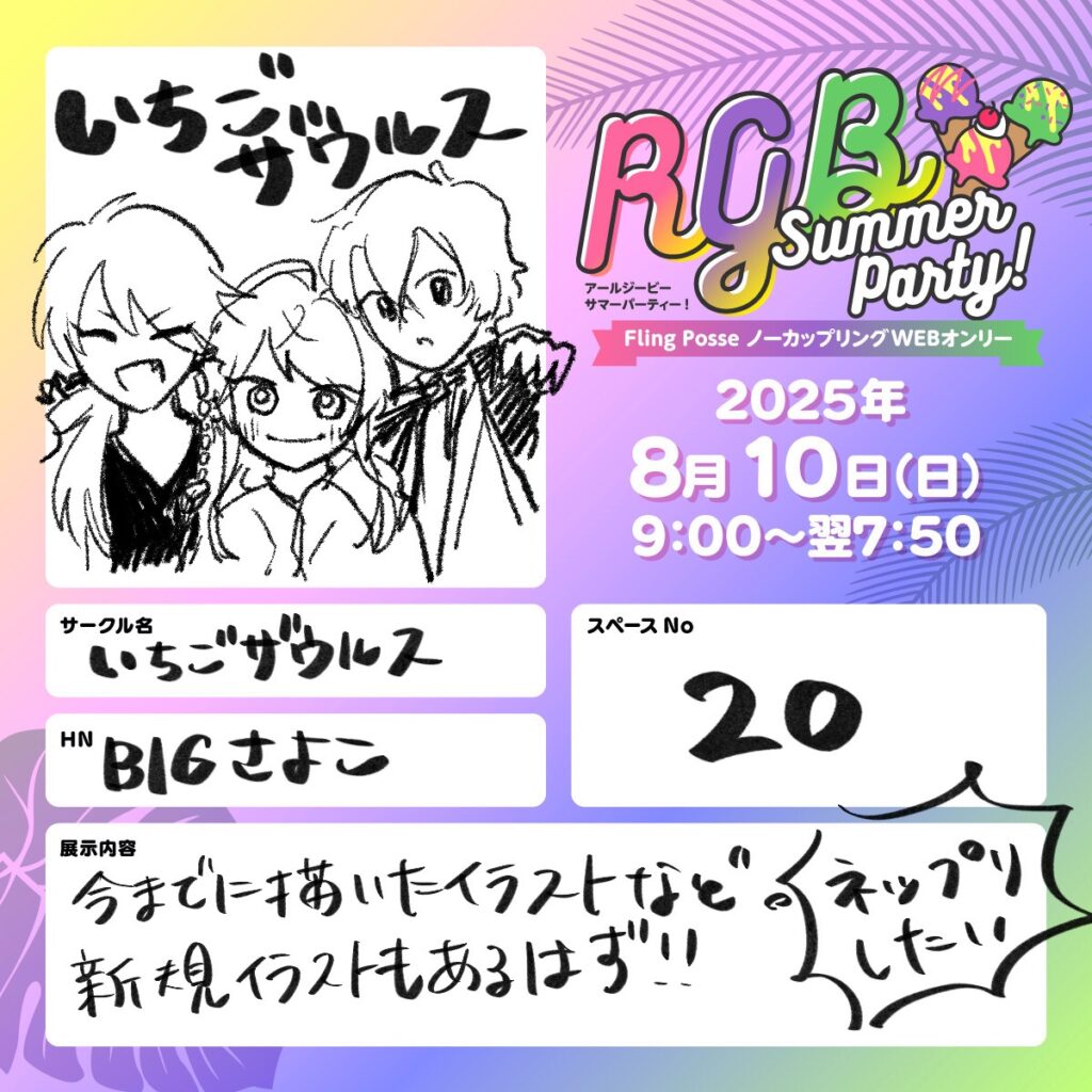 RGB Summer Party! Fling Posse ノーカップリングWEBオンリー 2025-11-14 参加表明シート 展示していたページ 新作イラスト 過去作品まとめページ Fling Posse イラスト 〜20252020年2021年イカゲームパロ2022年描いてないのかもしれない……2023年2024年